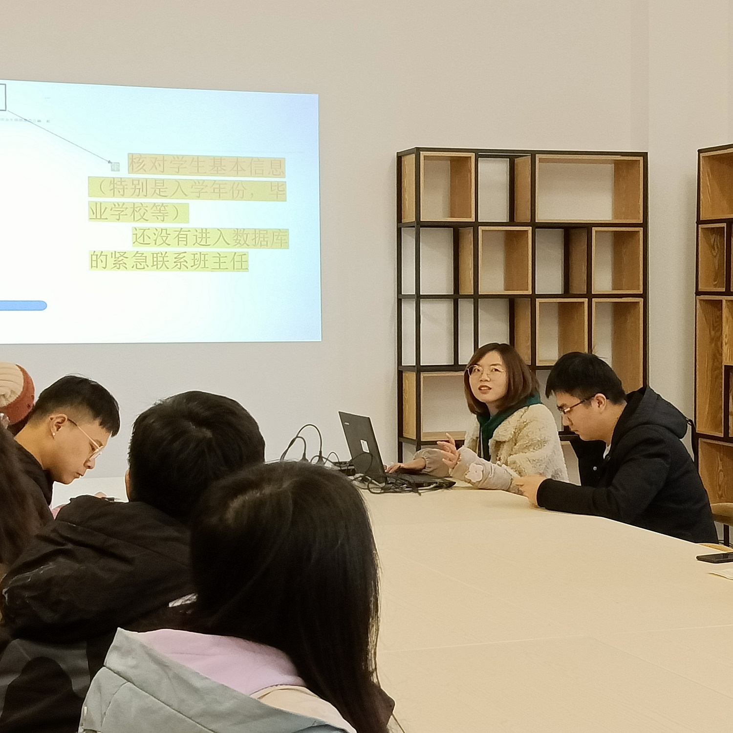 刘艳老师首先向同学们讲述了网上签约在毕业工作中的重要性,希望各班主任及毕业生能引起重视。随后,刘老师为同学们展示了网上签约模板,通过展示已完成的网签信息,为同学们逐条解释各类型网签中需重点填写的信息,并对同学们提出的问题作出专业解答。最后,刘老师叮嘱同学们要严格按照要求填写,避免因信息错误而被退回档案。