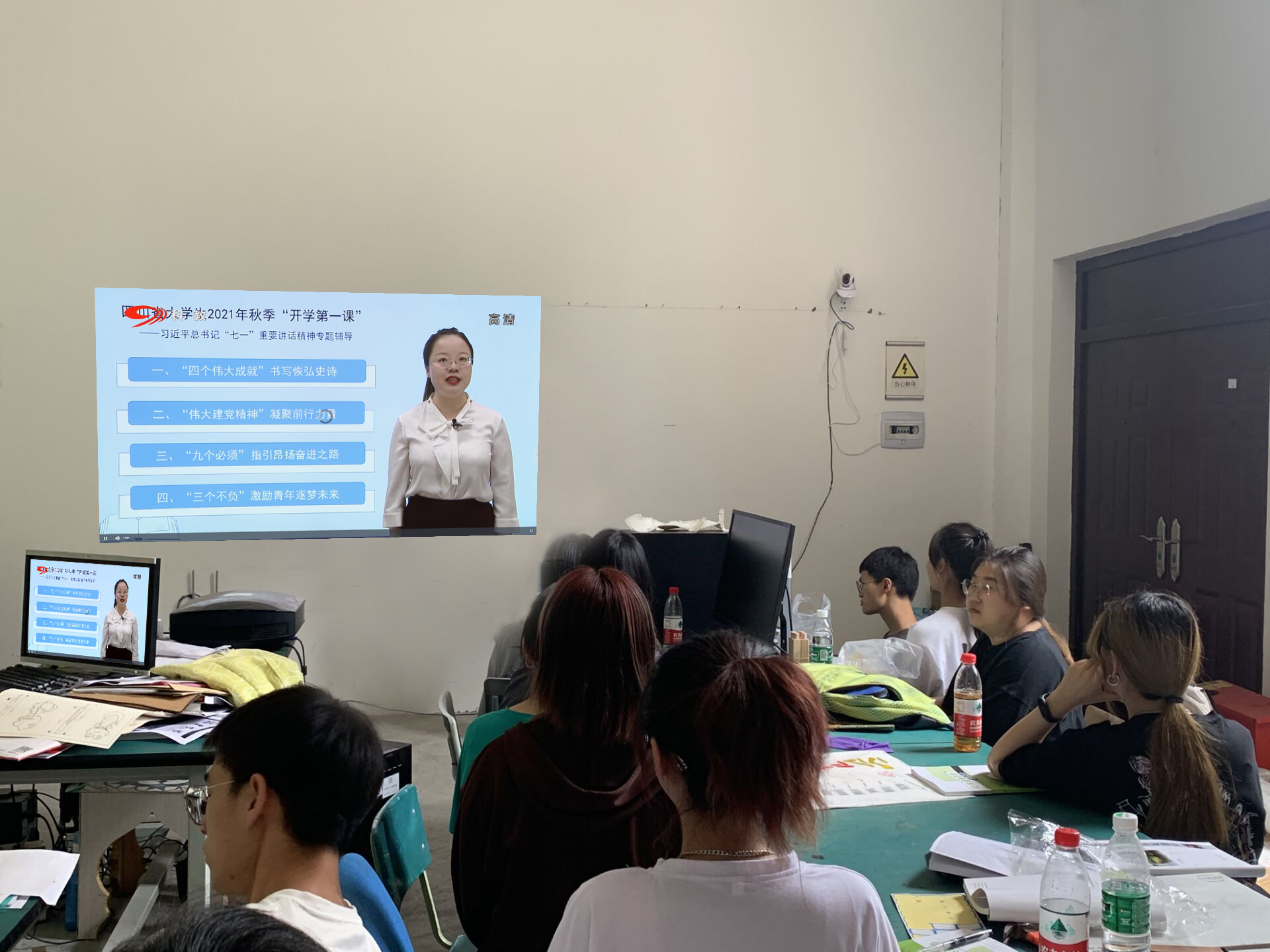 9月5日,为贯彻习近平总书记“七一”重要讲话精神,传承弘扬共产党人伟大建党精神,把伟大精神转化为奋进新时代、迈步新征程的强大动力。我院组织全体同学线上收看四川省大学生2021年秋季“开学第一课””——习近平总书记“七一”重要讲话精神专题辅导。