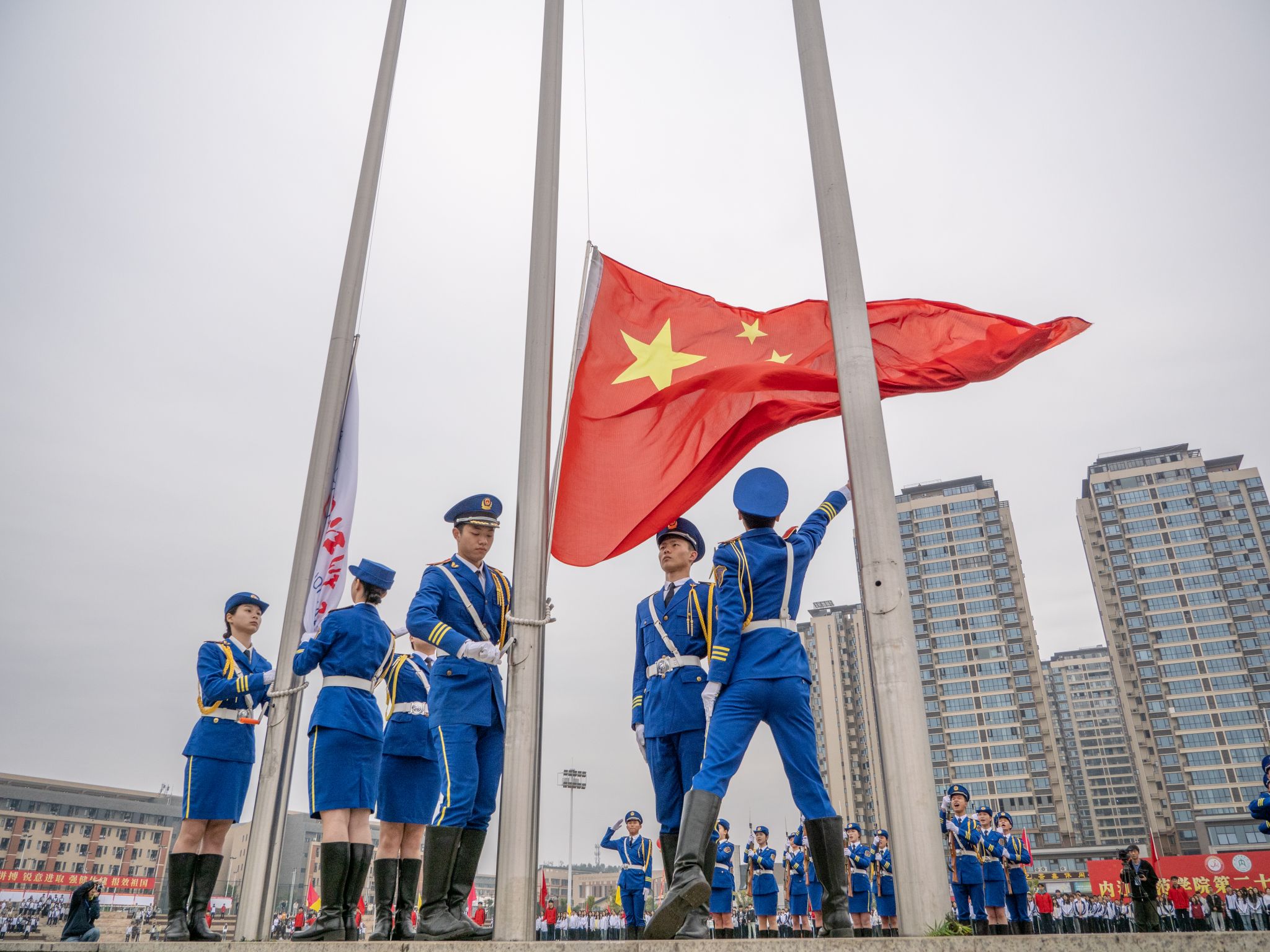 开幕式上,首先入场的是国旗方队和校旗护卫队,他们气宇轩昂、精神抖擞,步伐铿锵有力。在奏唱国歌、校歌中,运动会正式拉开序幕。