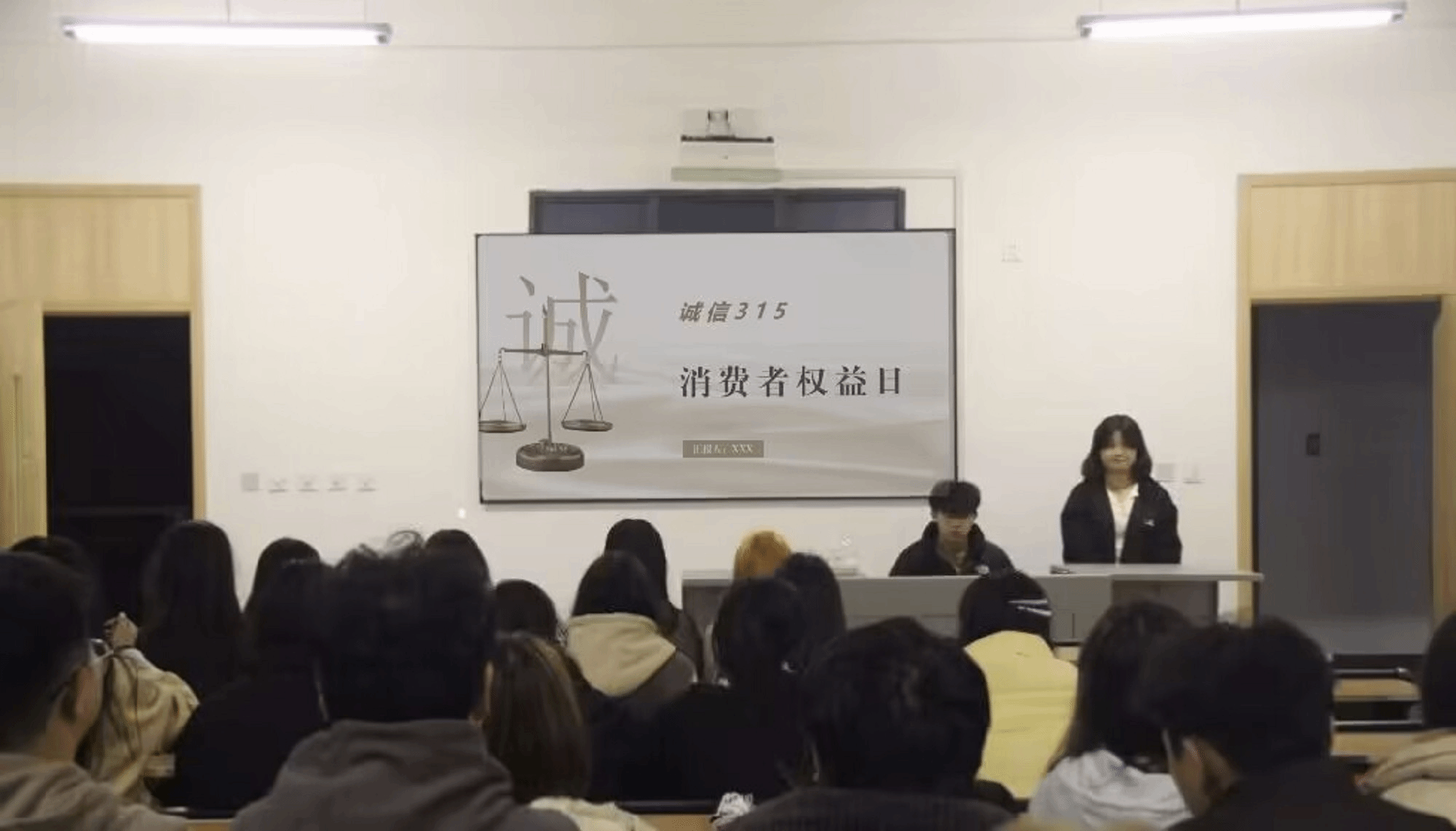 在班会中,各班团支书首先组织同学们观看“消费者权益”相关视频,使同学们意识到“消费者权益”于每个人的重要性,加强同学们对消费者权益的重视。随后,各班团支书向同学们指出何为正确的消费理念及如何维护自身消费权益,并分享了部分大学生通过正确手段利用法律武器成功维护自身消费权益的例子,列举了个别大学生因为错误的消费理念和不合理的消费行为给自身及家庭造成巨大损失的例子。