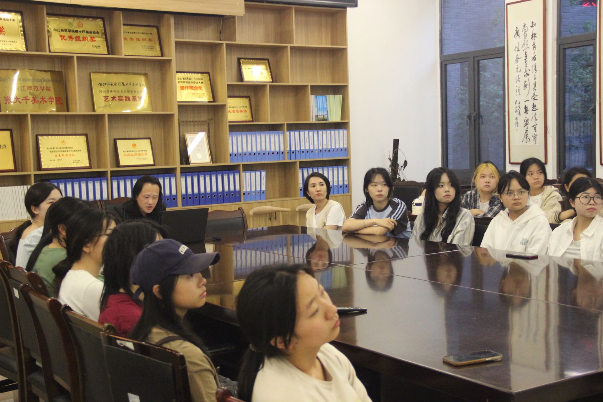 为深入学习贯彻党的二十大精神,进一步加强和改进大学生思想政治教育工作,切实推动党纪学习教育走深走实,4月22日,张大千美术学院院长罗凯教授在2023级4班开展了领导干部联系班级系列活动,班主任王乙钧及全班同学参加活动。