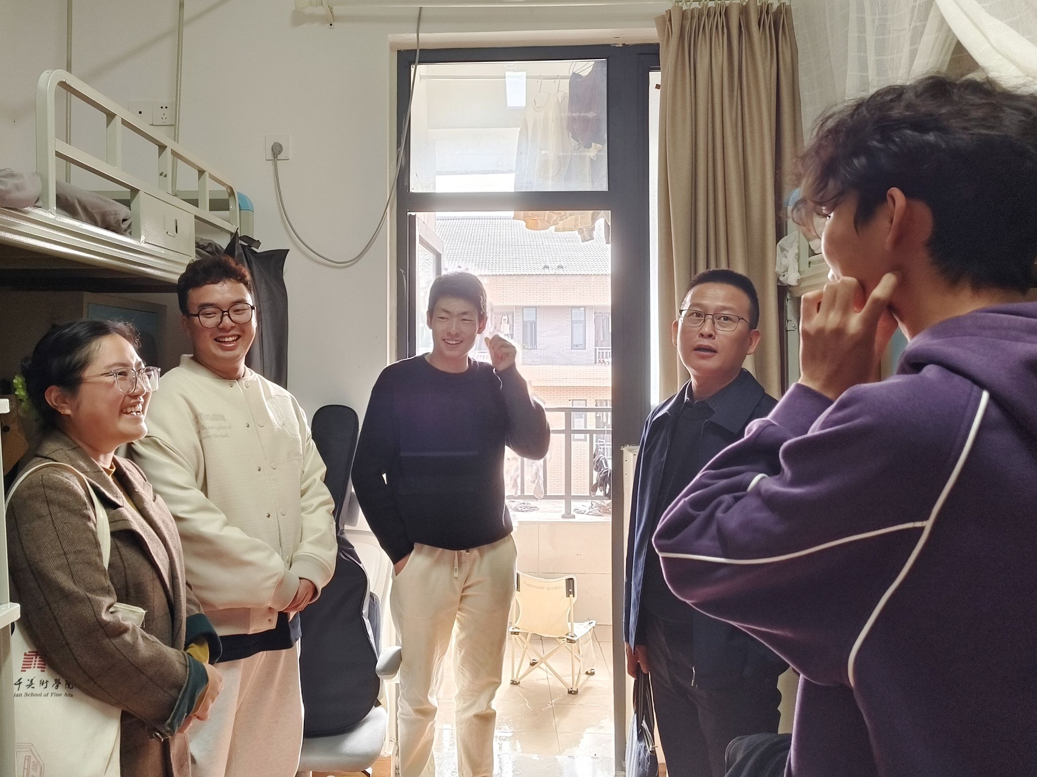 课余时间,邓部长来到我院大千苑18-3学生寝室,关心同学们平时的生活成本,有没有遇到什么个人能力范围外的问题,还详细查看了宿舍的基础设施,再三叮嘱同学们要注意寝室内用电用水安全,并告诫同学们要注重宿舍卫生安全,营造良好的学习生活环境。