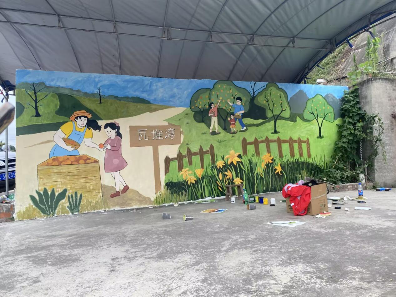 (图为团队成员正在完善墙绘内容许张其摄)